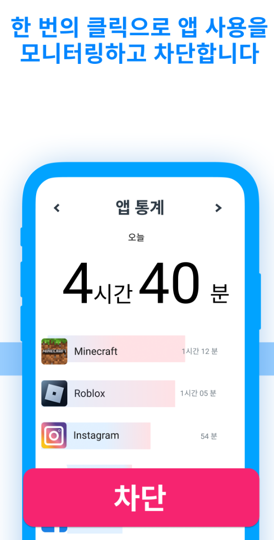 앱 관리 - 자녀가 사용한 앱을 확인하고 일상 생활에 지장을 주는 앱이 있는 경우 사용을 제한합니다.
