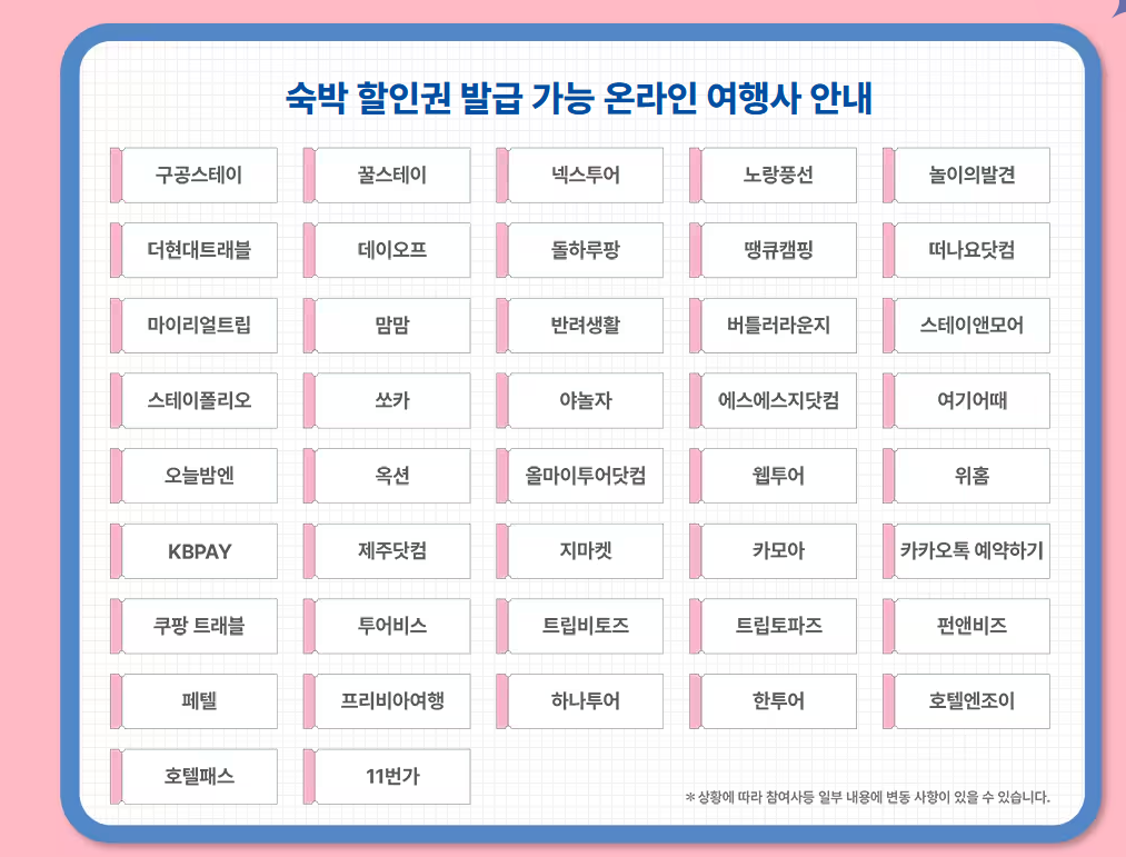 숙박 할인권 발급 가능 온라인 여행사 안내