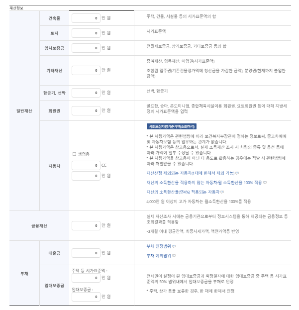 3) 복지로 기초연금 모의계산 사이트 방문하여 재산 정보에서 해당 사항 입력해 주세요.